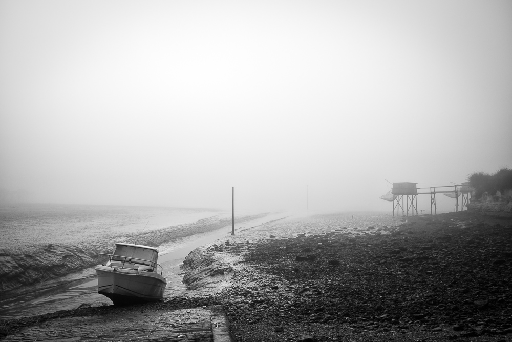 Le comité d’accueil est particulier car un brouillard à couper au couteau est présent. Il est dense même si la luminosité du ciel est assez élevée. Qu’à cela ne tienne, c’est peut-être l’occasion de voir ce village sous un autre angle et d’immortaliser Talmont différemment.